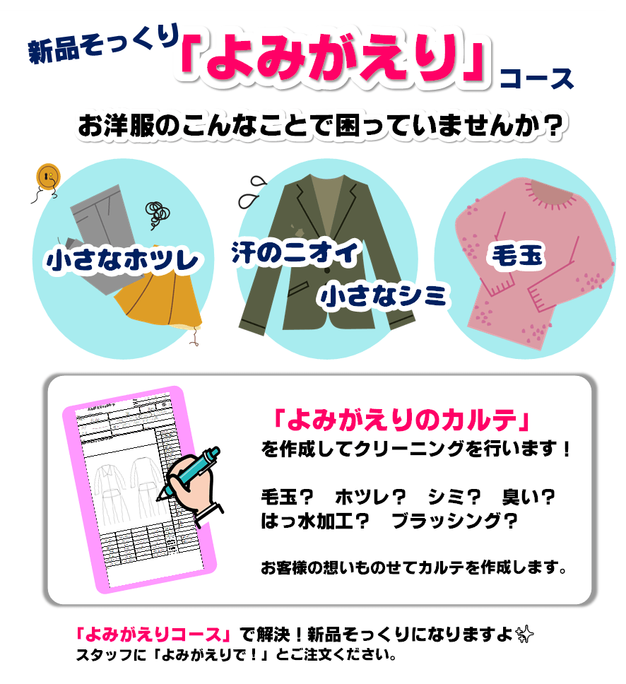 スタッフに「よみがえりコースで!」とお出しくださいね。