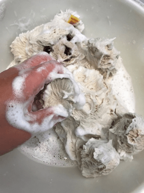 洗剤を泡立てて手で優しく洗っていきます。